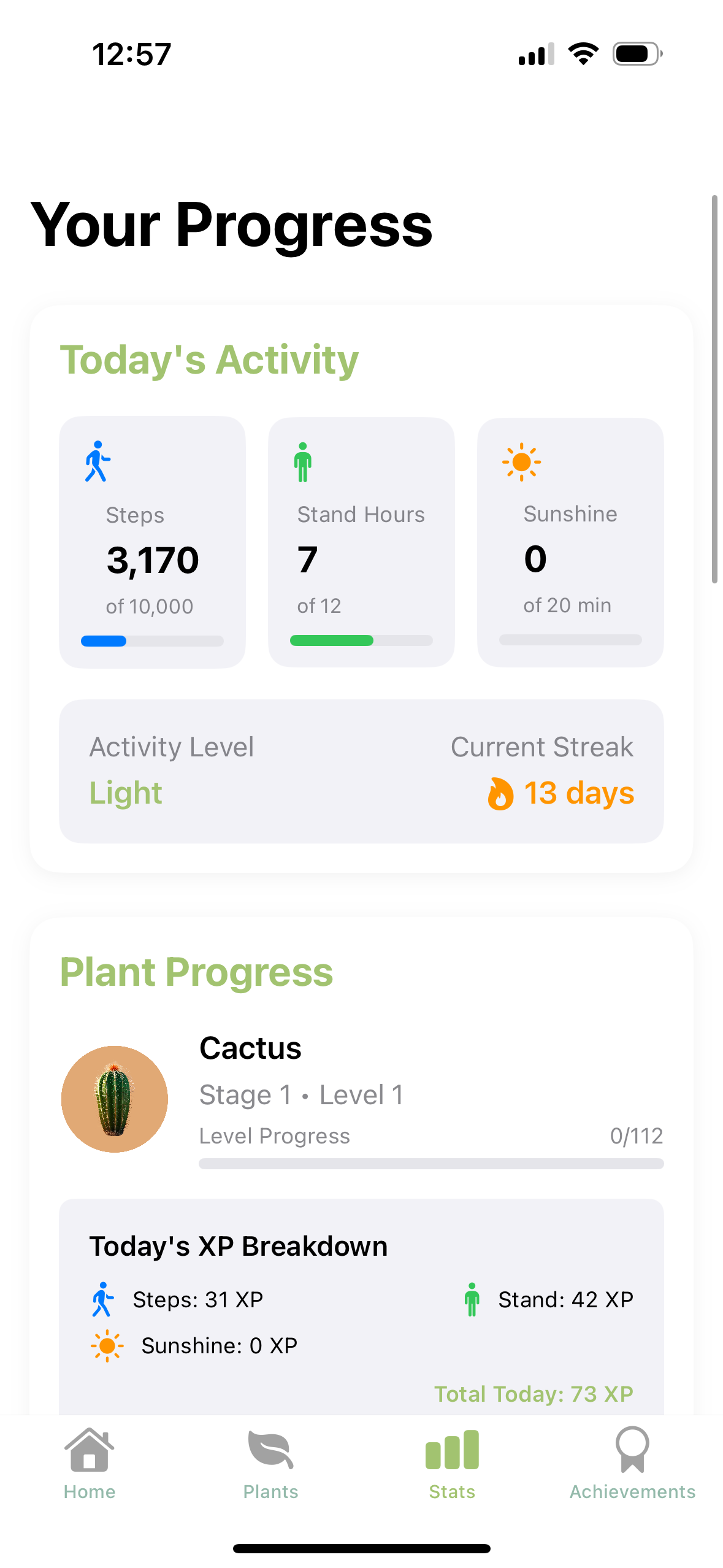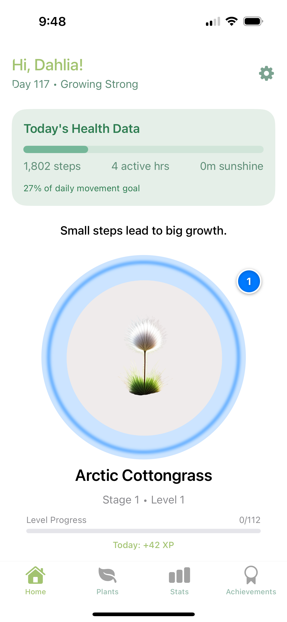 Turn your daily movement into a thriving garden. Track steps, standing time, and sunshine while watching beautiful plants grow with every healthy choice you make.