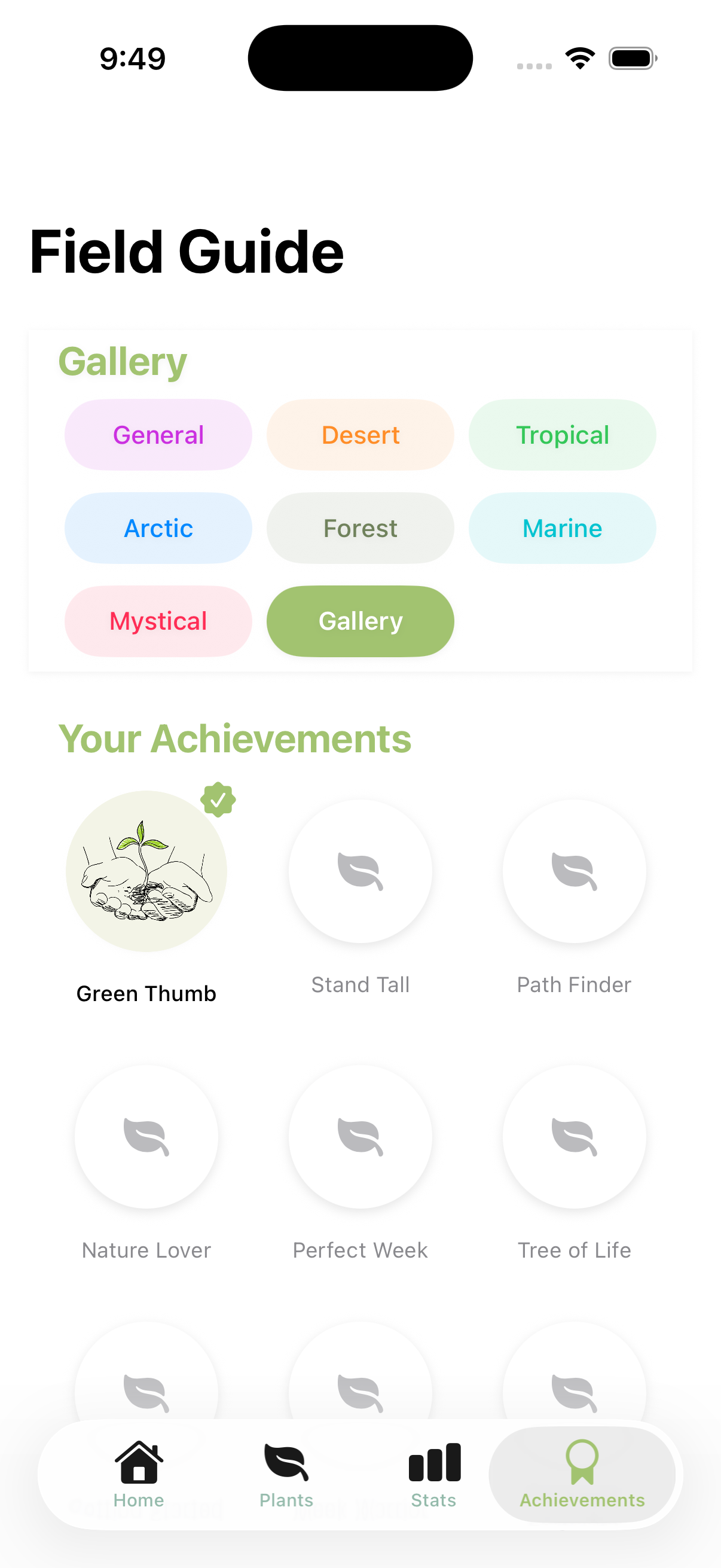 Earn Achievement Badges to fill your Field Guide and celebrate short and long-term milestones.